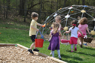 Caught in the act...of sharing. Spotted Jack running toward one of his classmates at his Busy Bees egg hunt. Overheard, "Here you can have this one, Kynna!" Love him.