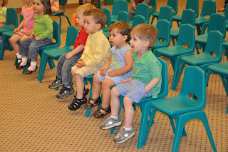 See those feet dangling from the tiny preschool sized chair? I remembered a very similar photo of Jack from a just a couple short years ago. I recall thinking I bet his feet will be touching the ground next year. Of course, Jack has long had his feet planted on the carpet when he sits for preschool worship, puppet shows and the like. Wonder if there's any chance Sam's will dangle just a wee bit longer...